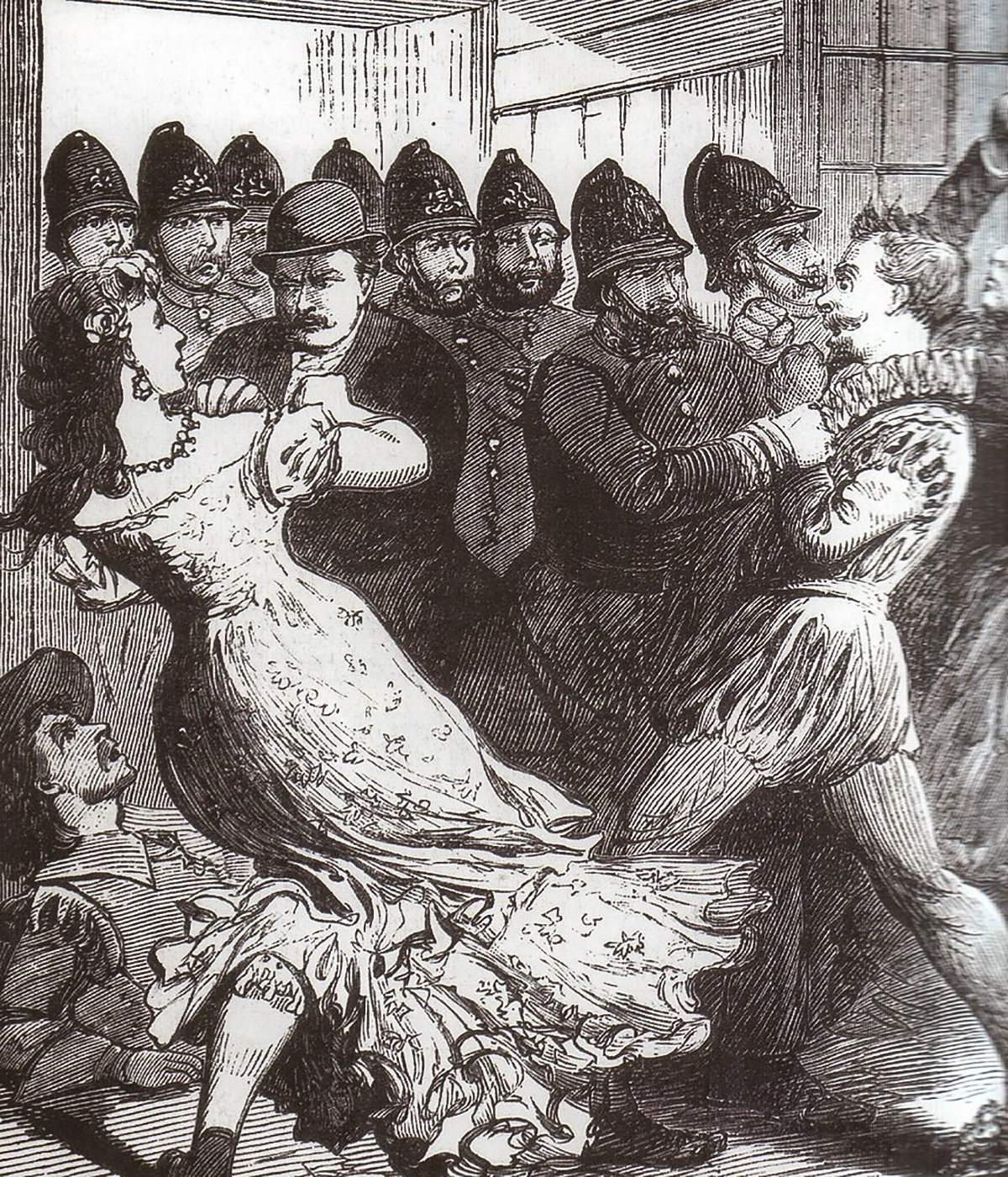 Але чоловіки на балу не здалися просто так. Почалася бійка, чоловіки в паніці скидали одяг і намагалися втекти, але на жаль це не увінчалося успіхом. 47 людей було заарештовано та закуто в кайдани.